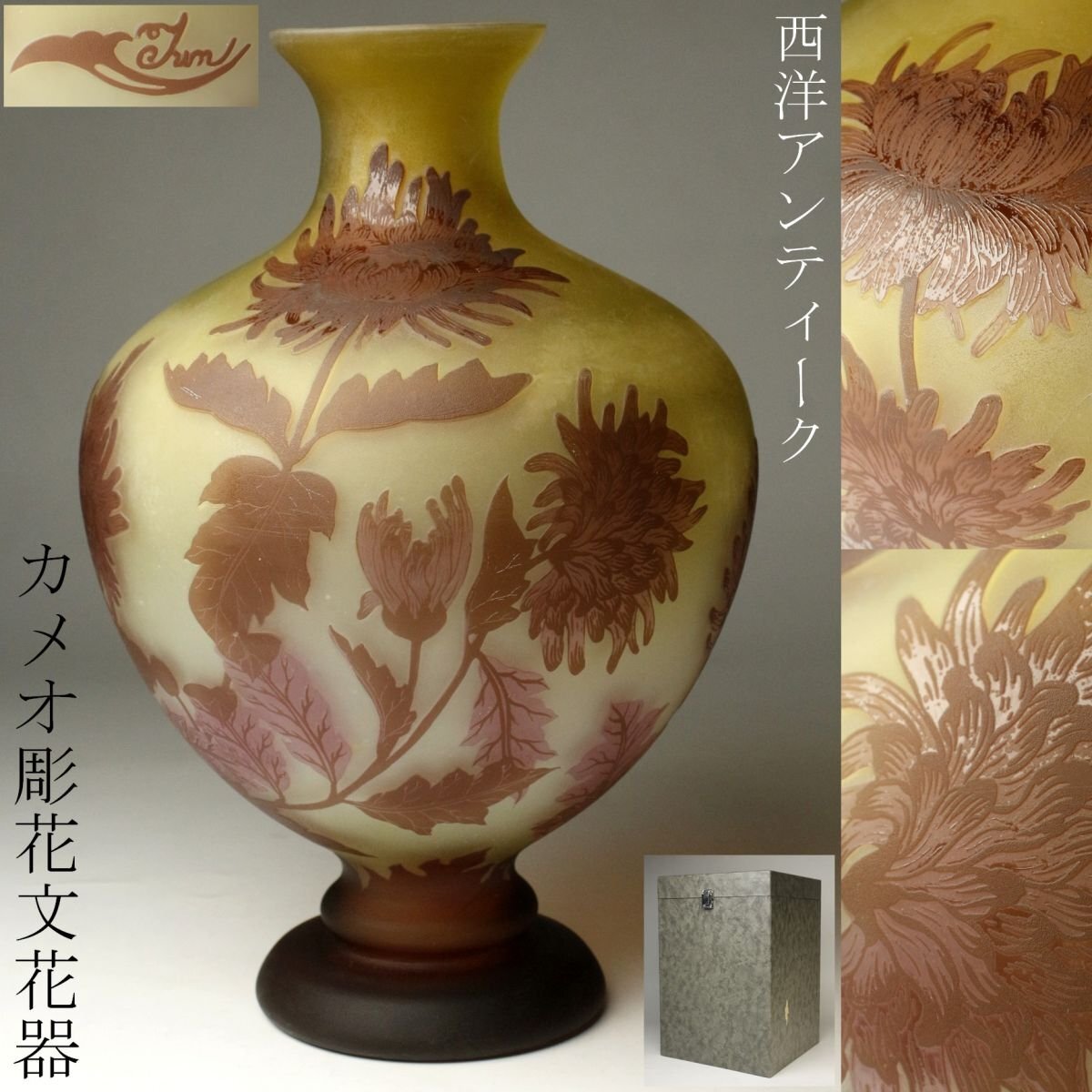 【LIG】西洋アンティーク 在銘 カメオ彫 花文花器 34㎝ 花瓶 細密造 [.QQP]25.2拍卖