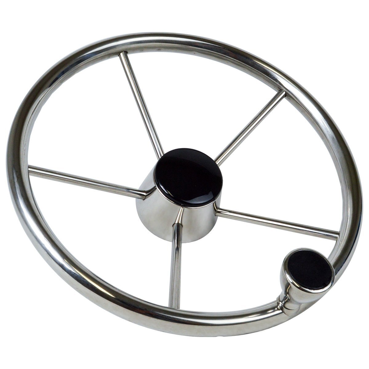 > 船 ハンドル 34cm-35cm 船舵 ステアリング ホイール 5本 スポーク スピナー付き ボート 船舶 マリン 漁船 ステンレス メッキ