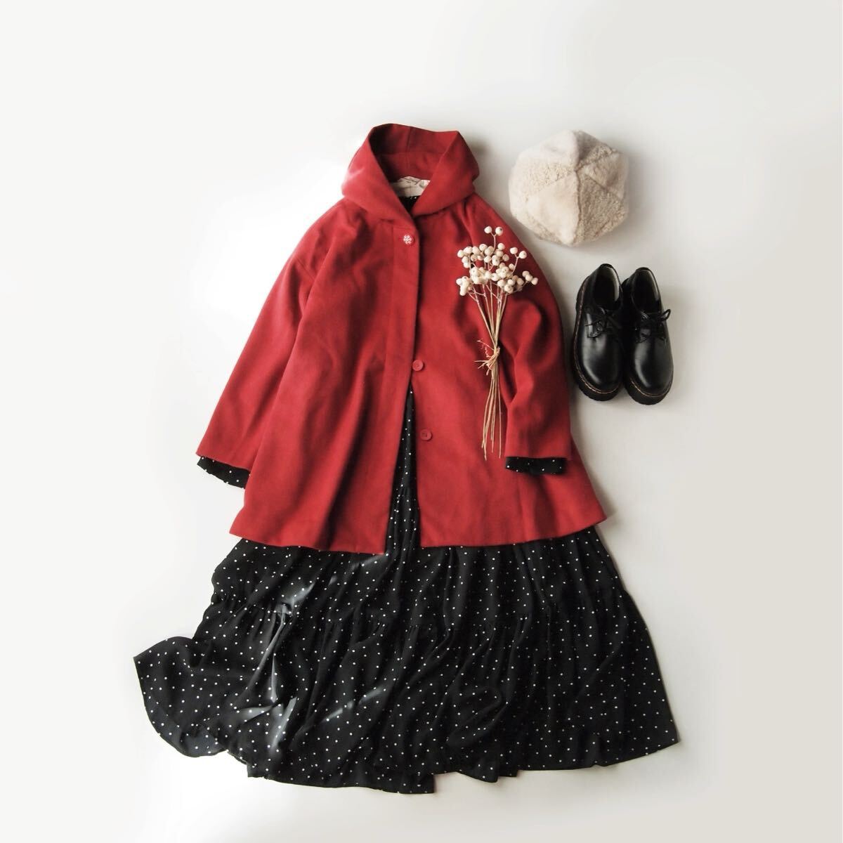 > Samansa Mos2*雪の結晶飾りボタンAラインフードコート 赤 SM2 サマンサモスモス*