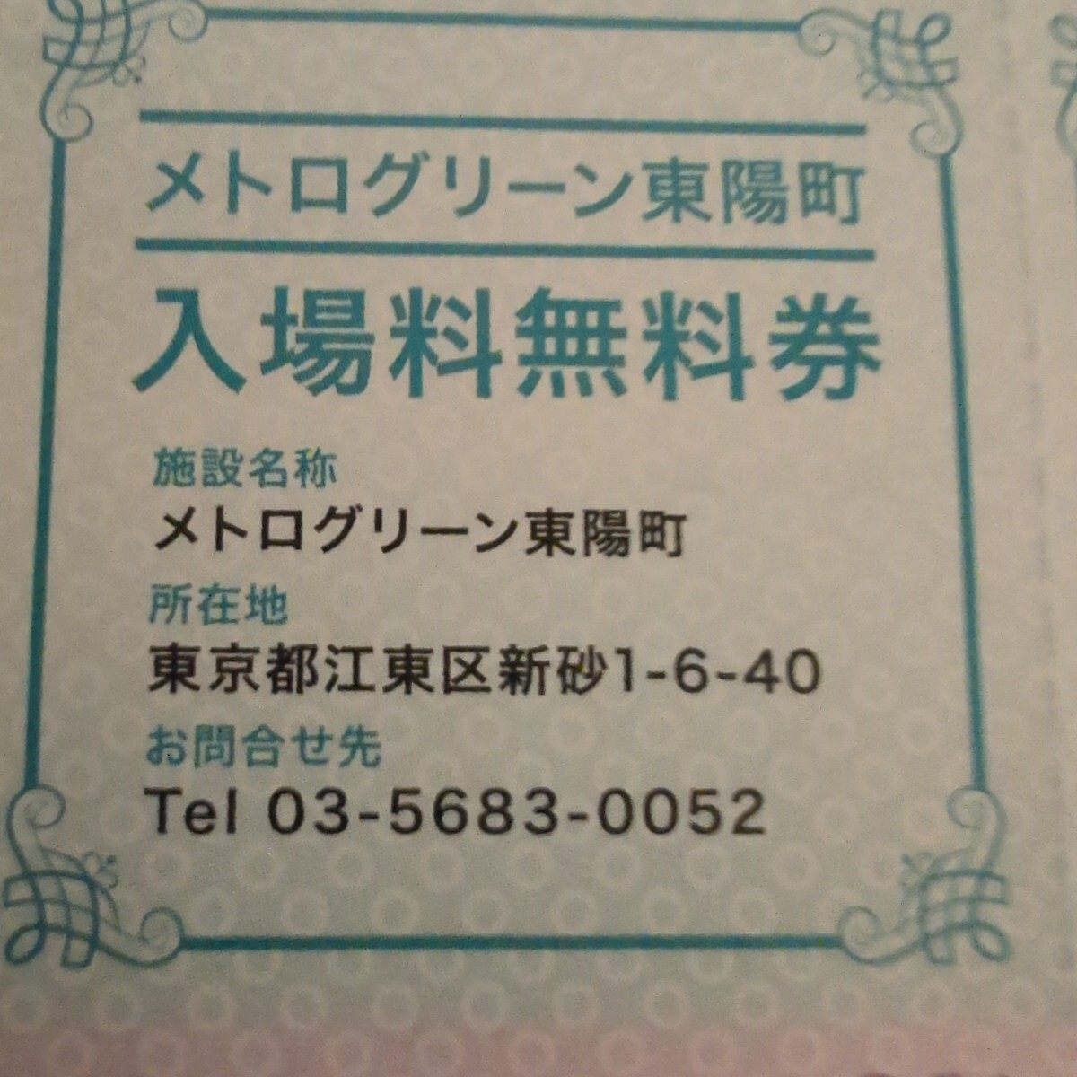 - 東京メトロ株主優待券のメトログリーン東陽町入場料無料券5枚セット1円(ミニレター送料込み86円)