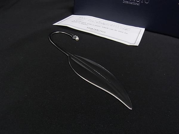 > ■美品■ MIKIMOTO ミキモト 本真珠 アコヤ真珠 パール 約3mm リーフ 葉 ブックマーカー 栞 ステーショナリー シルバー系 DJ5620