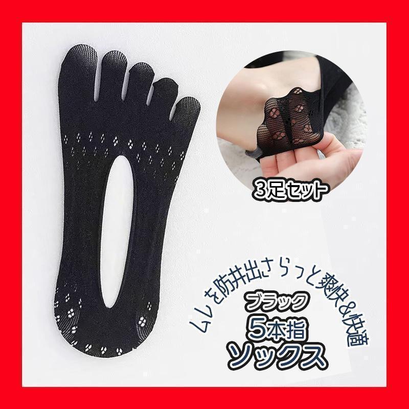 - 靴下 3足セット 黒 ブラック 5本指 5本指ソックス ソックス パンプス 蒸れにくい 薄手