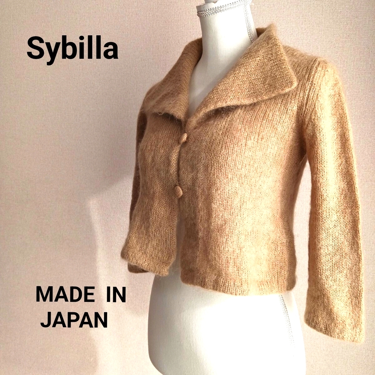 - 【B19】Sybilla シビラ モヘヤ カーディガン 長袖 ベージュ ニットジャケット ショート丈 くるみボタン モヘア67% 日本製
