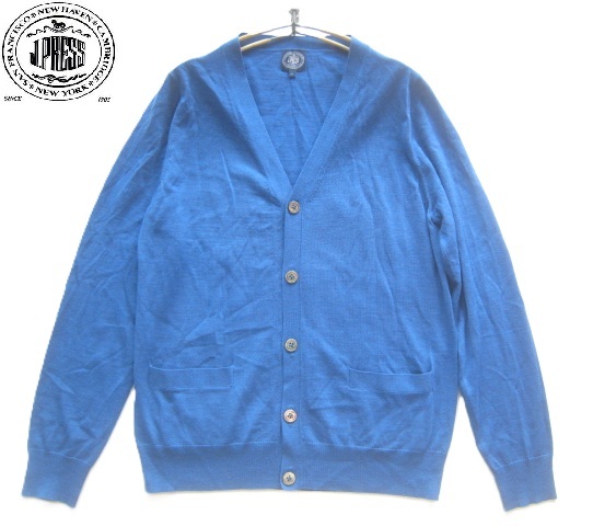 - 美品!!ジェイプレス J.PRESS*美シルエット 薄手ウールニットカーディガン L 青 ブルー Jプレス トラッド アイビー プレッピー