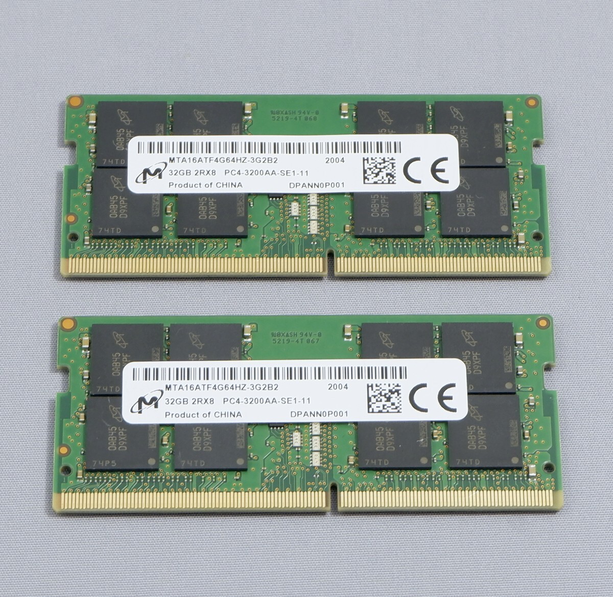 - micron DDR4-3200 SO-DIMM 32GB×2枚 計64GB ノートPC用