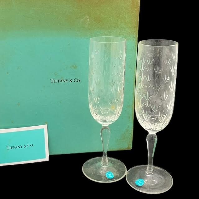 > 仙101 TIFFANY&Co. フローレット シャンパングラス ペア 2客セット 箱付き ティファニー ペアグラス クリア 洋食器