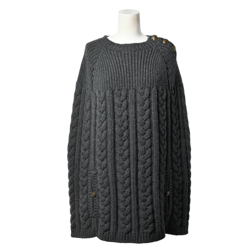 > 美品 LOUIS VUITTON ウール ニット ポンチョ LVロゴボタン5個付き L グレー ルイヴィトン KL4BABS297