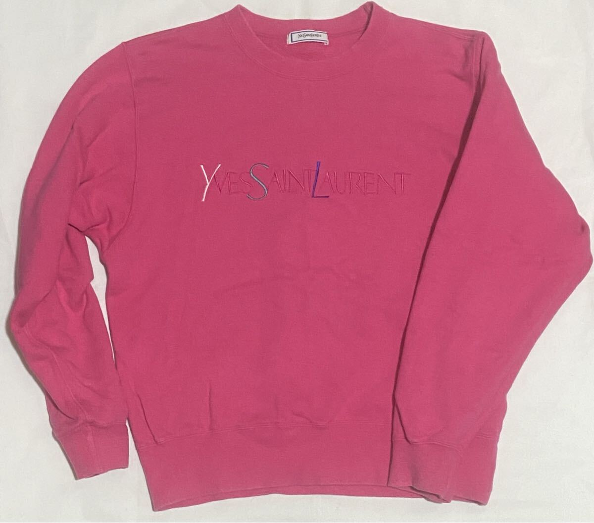 - Yves Saint Laurent イブサンローラン ピンク スウェット 刺繍 M