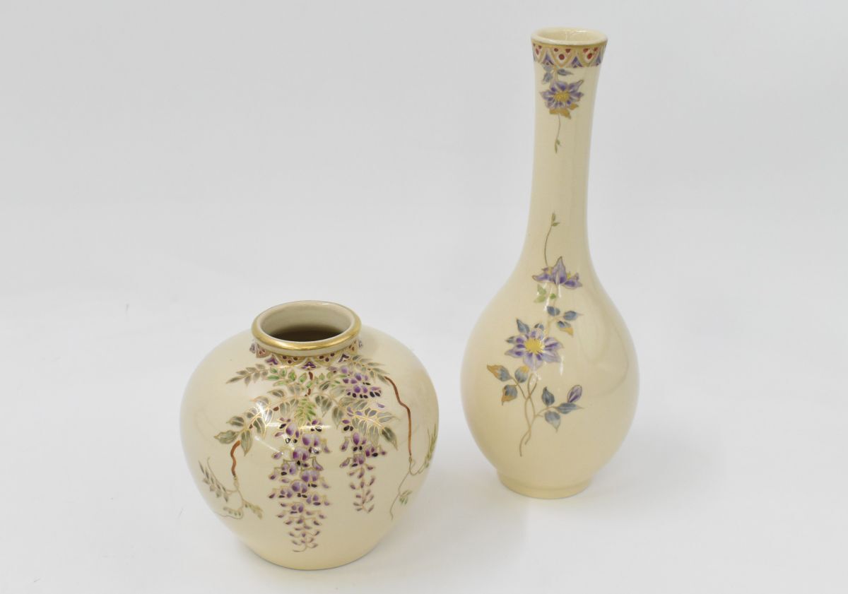 > (1297M 1126H6) 1円~ 薩摩焼 磯御庭窯 花瓶 2点セット 一輪挿し 鉄線 クレマチス 藤 下り藤 花器 花入 壺 置物 フラワーベース