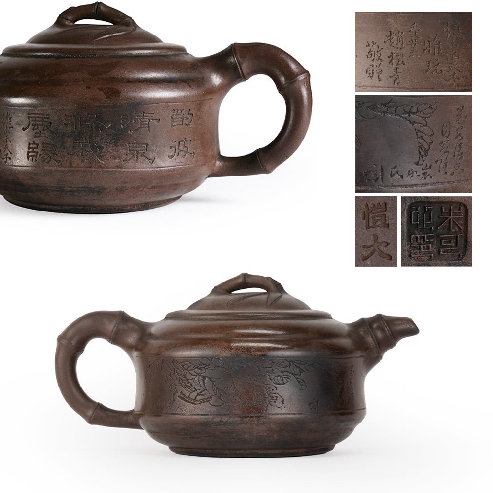 > 【夢工房】朱可心 「 愷大 」 銘 彫入 竹鼓壷 ( 煎茶 紫砂 朱泥 唐物 ) 2B-739
