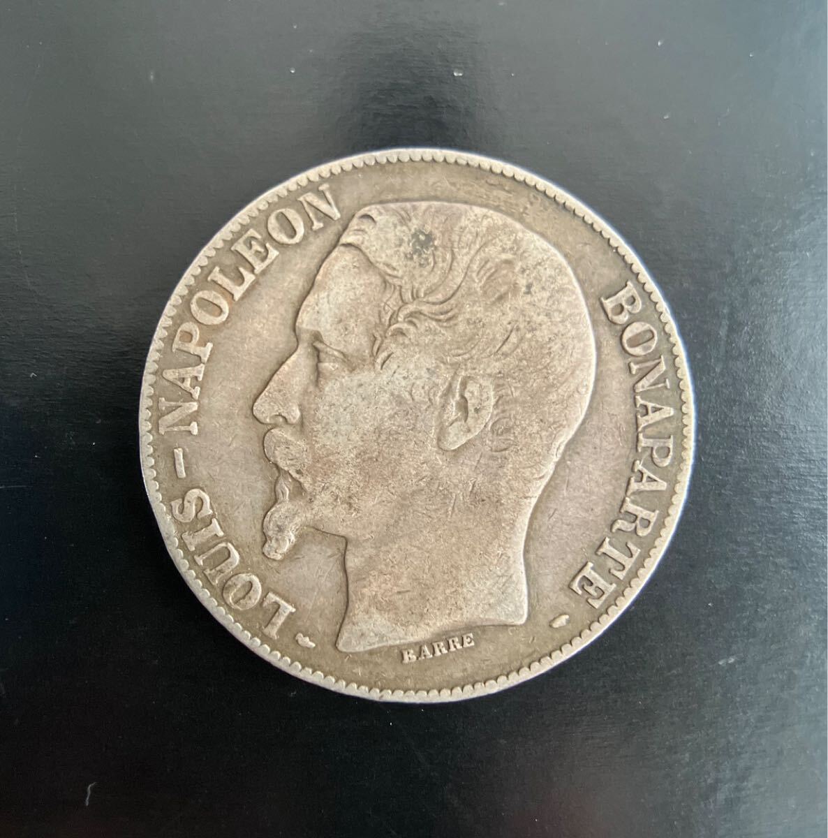 > ⑲ 1852年 フランス 5フラン銀貨 ルイ・ナポレオン・ボナパルト ナポレオン3世 アンティークコイン 外国古銭 ★27
