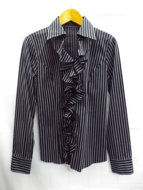 - 美品★PREMIUM by VICKY◎プレミアム バイ ビッキー/ストライプ柄/フリル/長袖ブラウス/長袖シャツ/日本製/1サイズ