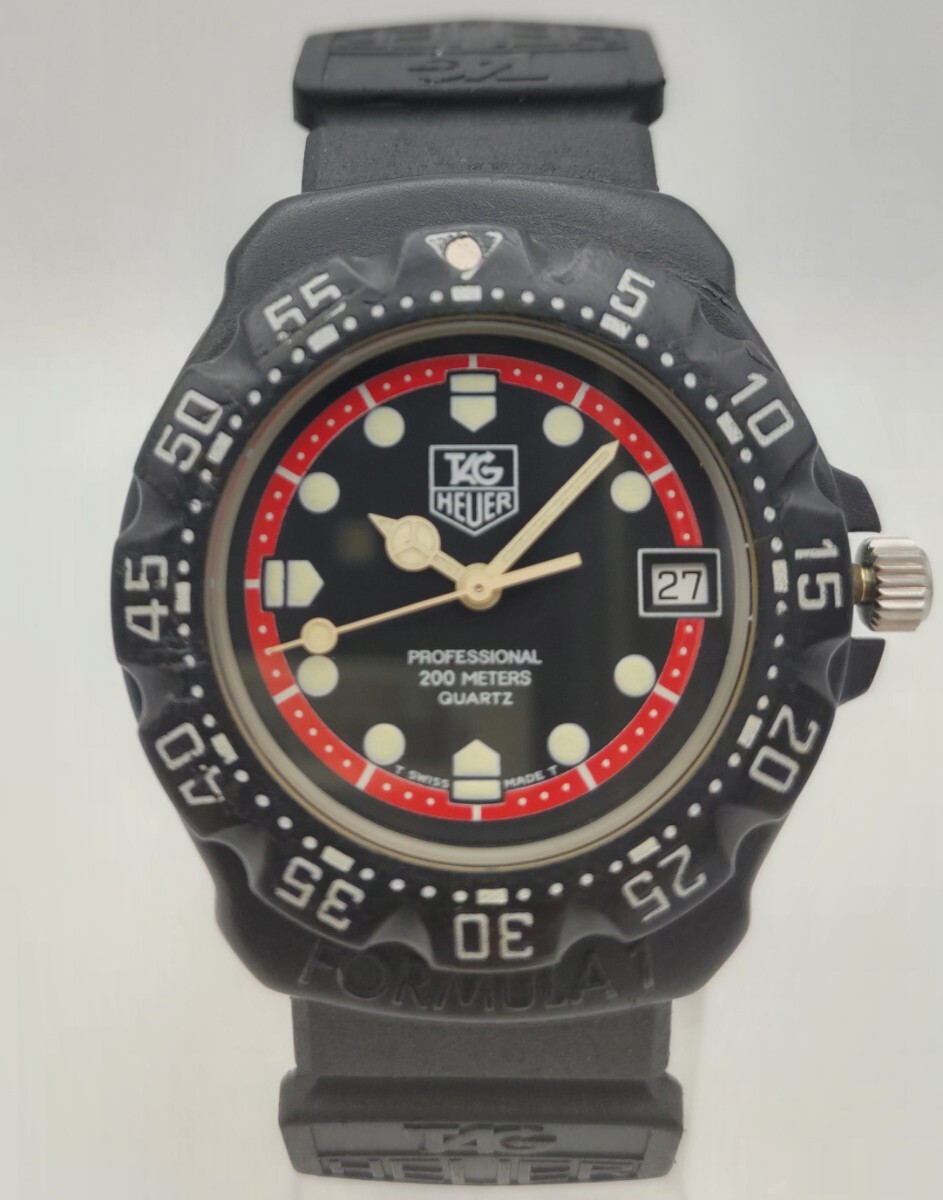 - 【稼働品】ボーイズ クォーツ タグホイヤー TAGHEUER Professional 200m フォーミュラ1シリーズ 383.513 黒/赤文字盤 純正ベルト