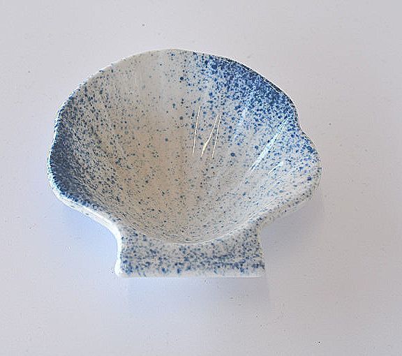 - 小皿 1枚 デザート皿 シェル形 白 青吹き sas117.5