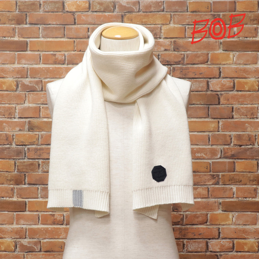 - 1円/BOB/マフラー 074731802 メリノウール混 吸水速乾 透湿 高機能 リブ編み 無地 イタリア製 ボブ 新品/白/ホワイト/me136/