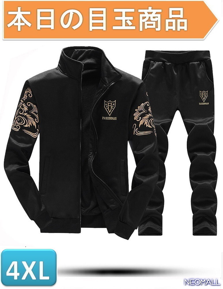 > 【今日の目玉】メンズセットアップ 上下セット ☆300 ブラック 4XLサイズ ジャージ スウェット お兄系 部屋着 おしゃれ