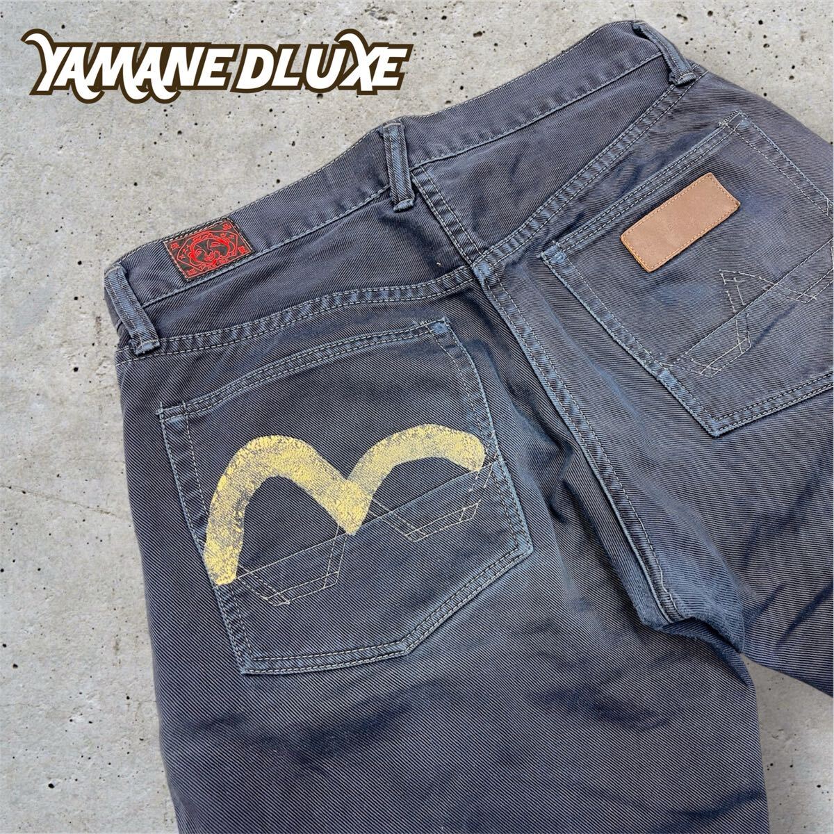> M■ EVISU エヴィス YAMANE DLUXE メンズ コットン ストレートパンツ 34×35 ネイビー 紺 カモメ 古着 SCOVILL ヤマネデラックス レア 希少