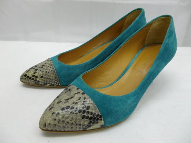 > 美品★ZILIAN ESSENTIALS◎エッセンシャルズ/パンプス/スウェード/パイソン/ブルー/青/39(24.5)