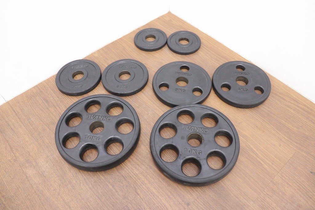 > J9975◆IVANKO/イヴァンコ◆ダンベルプレート◆10kg×2枚/5kg×2枚/2.5kg×2枚/1.25kg×2枚◆計37.5kg◆径50mm◆筋トレ◆現状品