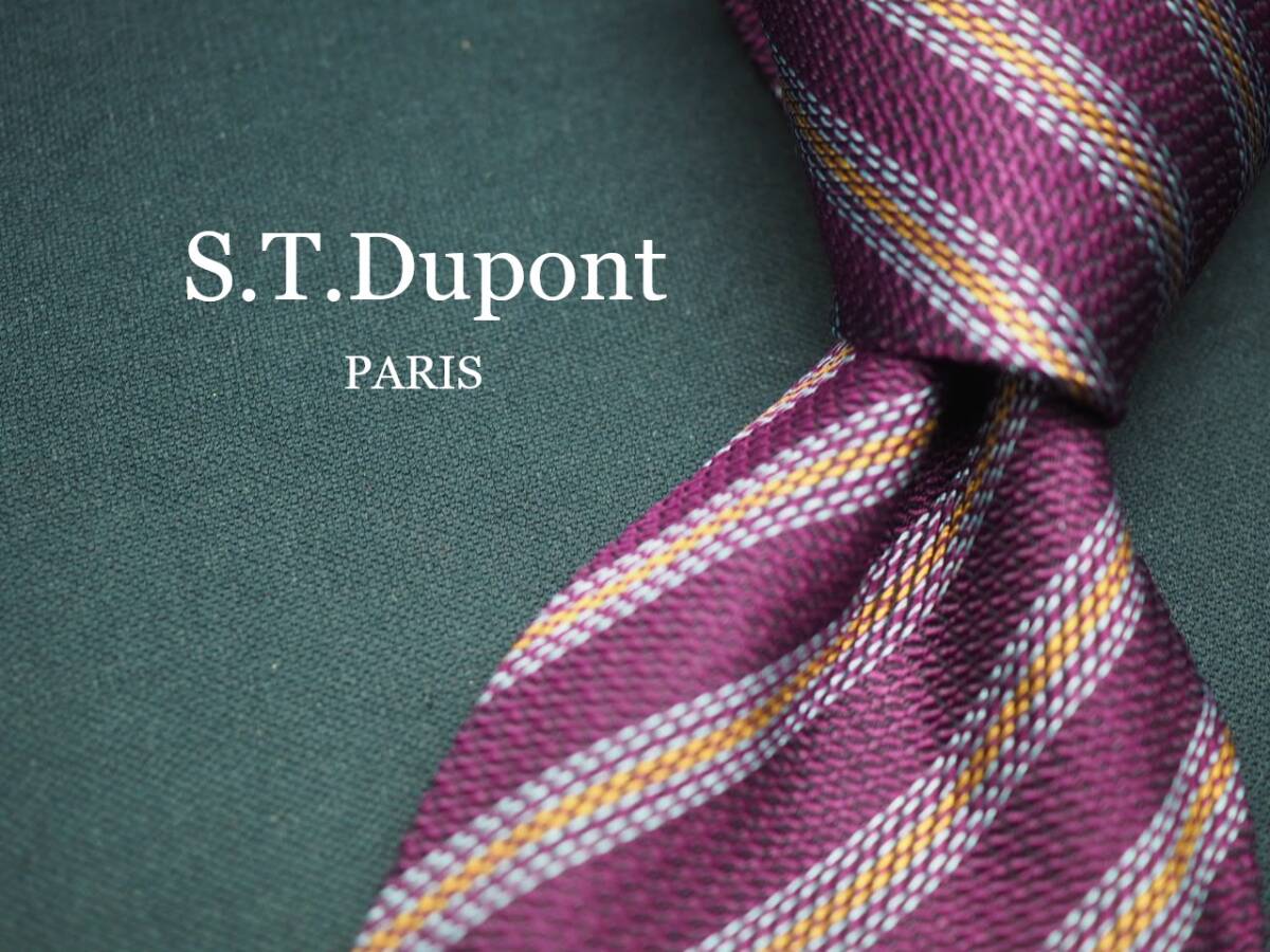 - 美品【S.T.Dupont デュポン】 G2421 パープル系 SILK ブランド ネクタイ 古着 良品 転売 仕入