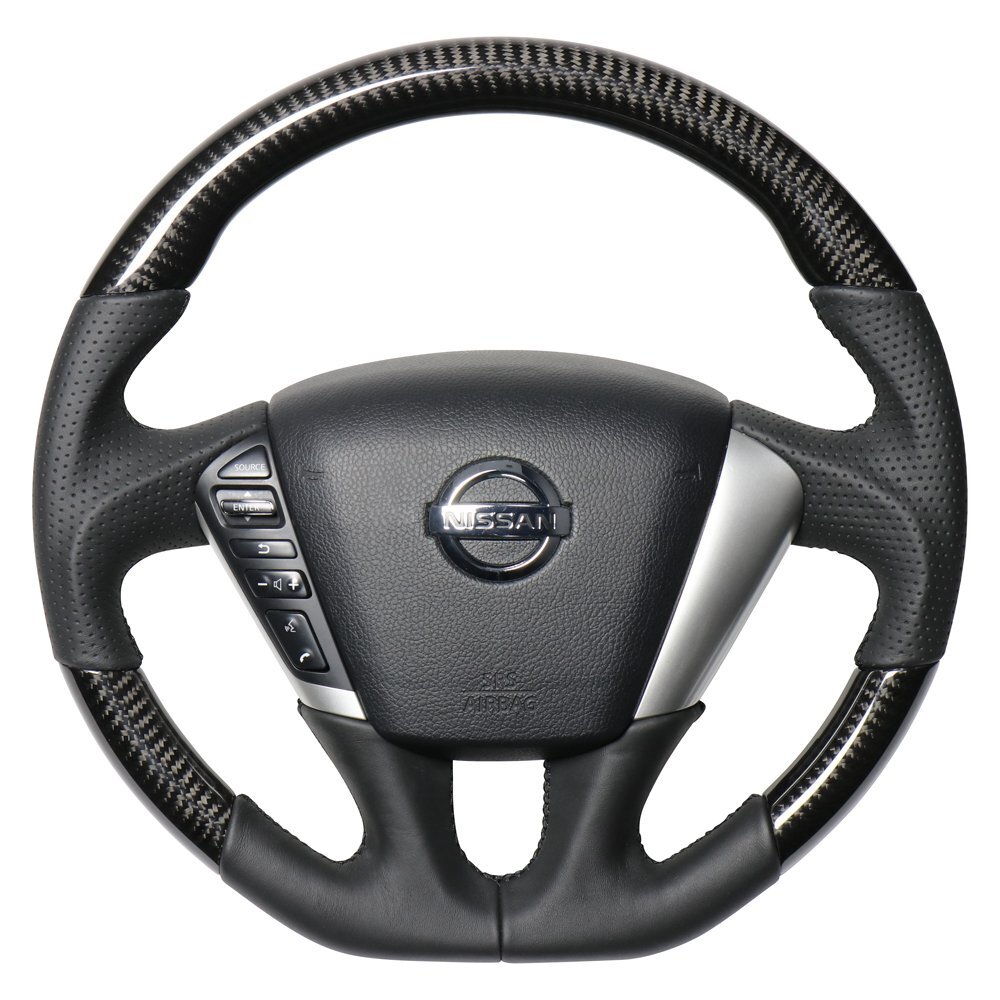 - REAL レアル ステアリング ブラックカーボン (ブラックユーロステッチ) エルグランド E52 2010年8月~