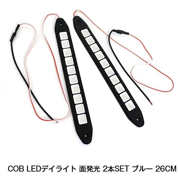 > LED デイライト バーライト COB 面発光 2本 セット ブルー 26cm スポット ライト 薄型 防水 12V パネル 強力 スリム コンパクト