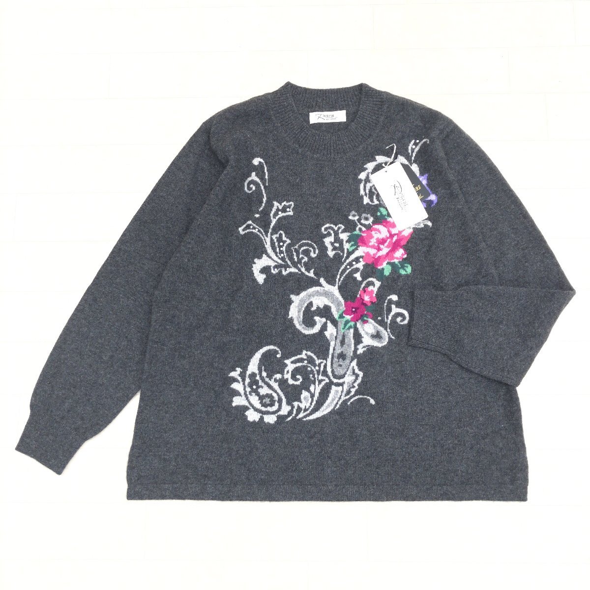 > 新品 Reknit Excellent 定価59,000円+税 上質 カシミヤ100% モックネック ニット セーター L ダークグレー プルオーバー レディース 未使用