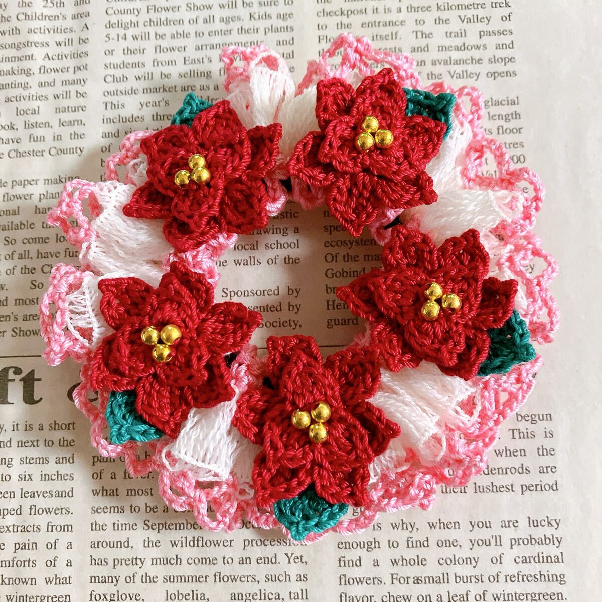 - ☆ポインセチアのシュシュ*ゴム替え可能*ハンドメイド*レース編み*dbk*