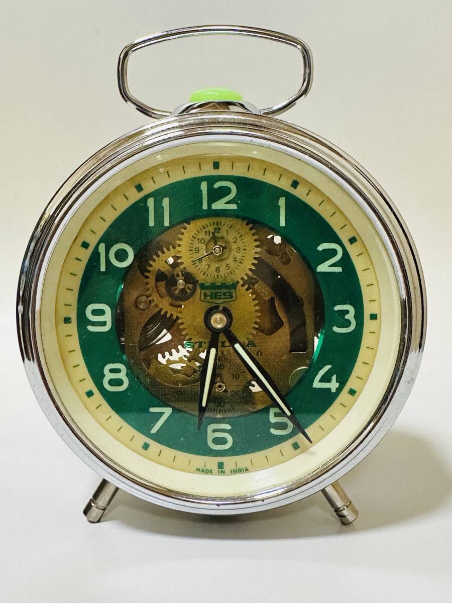 - レトロ、稀少品、「HES、STELLA」スケルトン手巻き目覚まし時計、動作品、未使用保管品、インド製