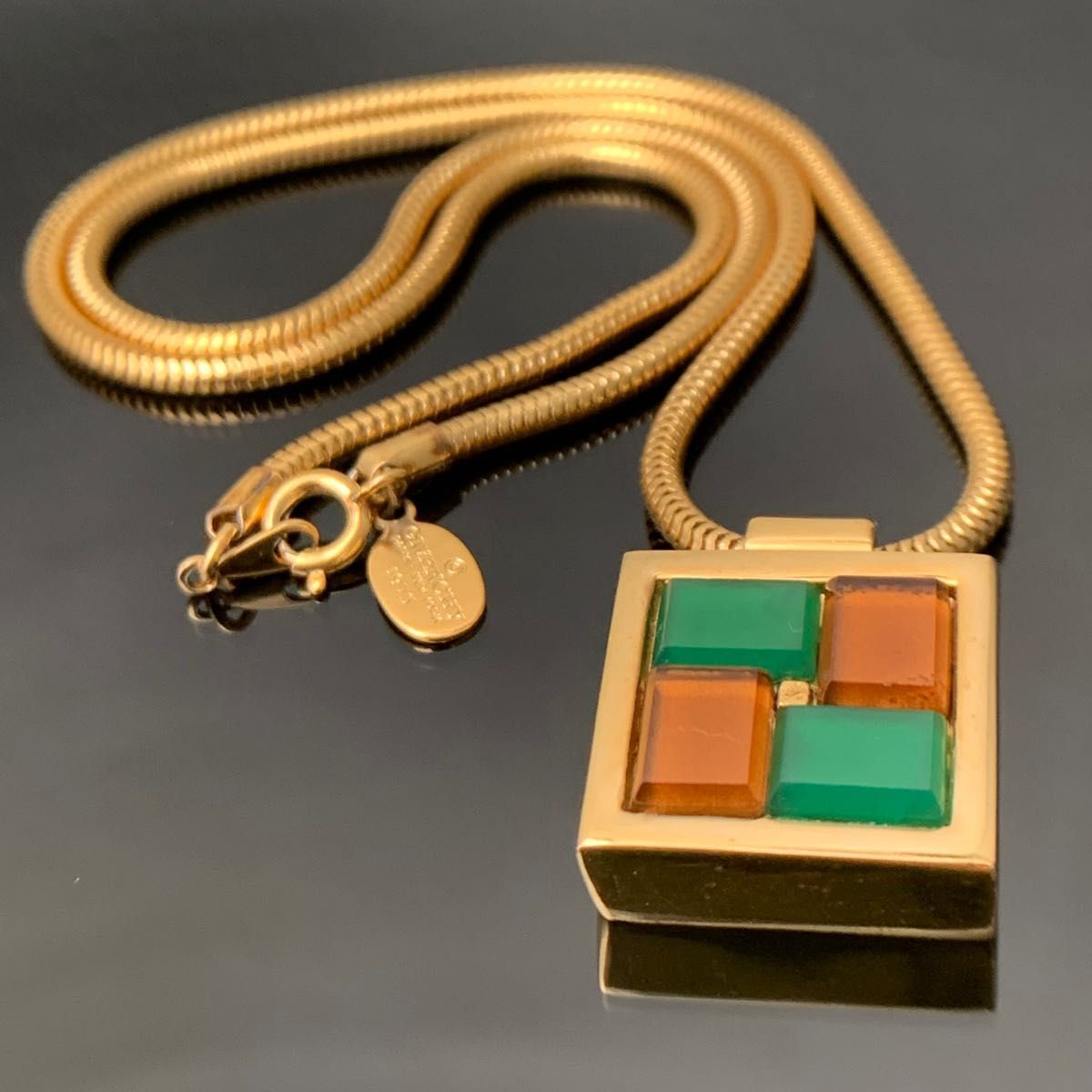> 1円 ジバンシー ネックレス グリーン バイカラー スクエア ゴールド GIVENCHY レディース ジバンシィ GP 1スタ
