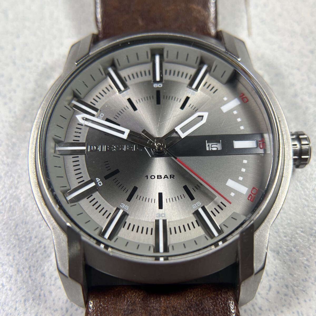 - 稼動品 DZ1811 アームバー 電池新品交換 純正レザーベルト デザイン良し DIESEL ディーゼル 拭き上げ清掃済