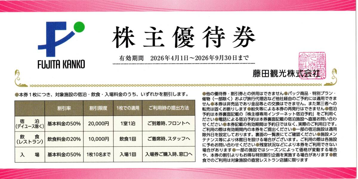 - 藤田観光 優待券10枚(ワシントンホテル ホテルグレイスリー等で利用可能) 日帰り施設利用券2枚 送料無料 匿名配送