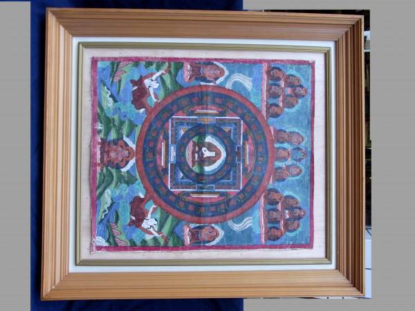 - No206 古いチベット 曼荼羅 額装 検索 骨董鑑定中国貿易大陸社寺