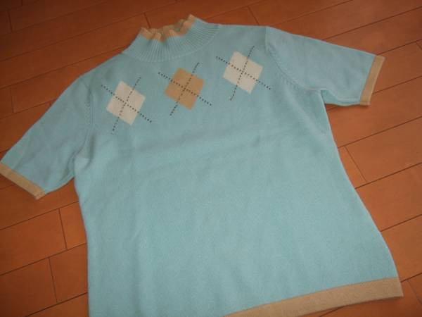 - H’IGOR★カシミア100% 半袖アーガイルニット★フリー 水色