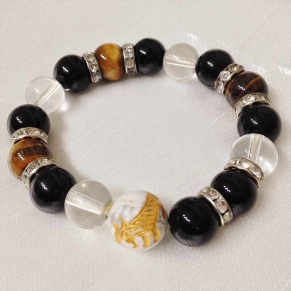 - 天然石 ブレスレット 直径12mm ハウライトタイガーアイ水晶オニキス クリスタル