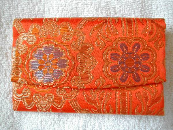 - 手作り 金襴カードケース 名刺入れ 保険証入れ (橙金)