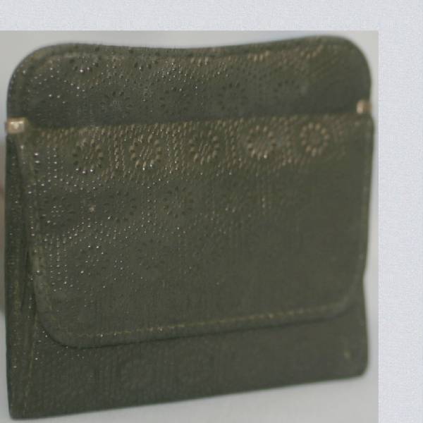 - インデンヤ女性用10,5x10㎝黒革開閉式小銭入れ付財布美品 ○C8-639-2