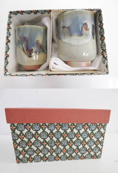 > 未使用品■香春焼 窯元山岡徹山 夫婦湯呑 箱入り 管理1601 A-1