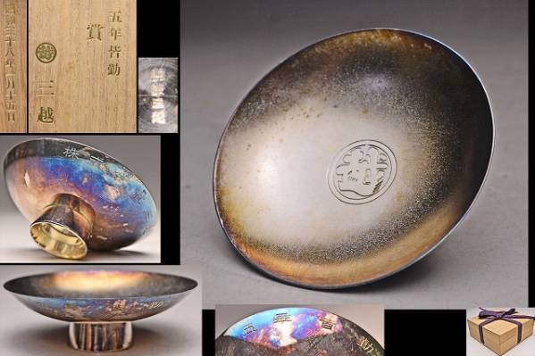 - 三越 ★ 純銀製 ★ 足付ぐい呑 ★ 共箱 ★ 50g ★ 検 盃 杯 酒器 シルバー ★