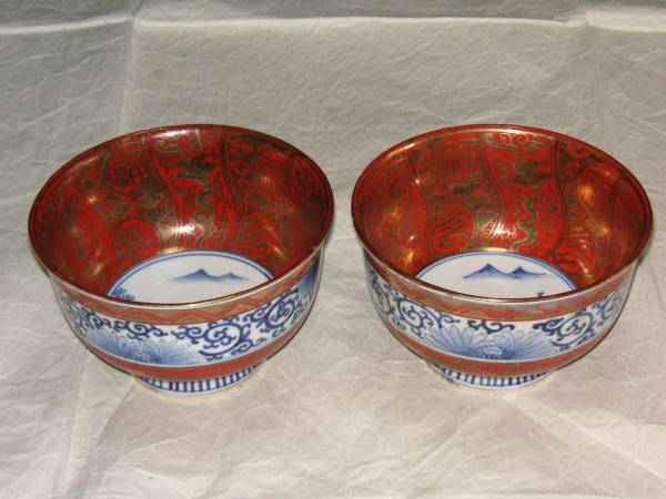 - 九谷 盃洗 2客 寿 福 山水 鳳凰