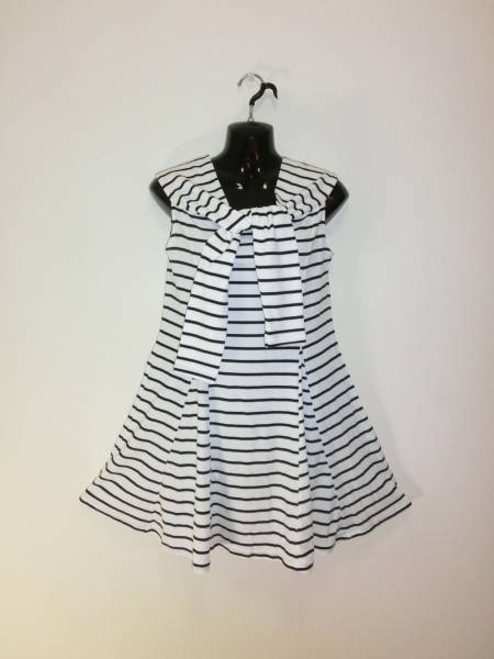 - ☆OP1可愛いいボーダー柄ノースリ♪ミニ丈ワンピMサイズ白☆