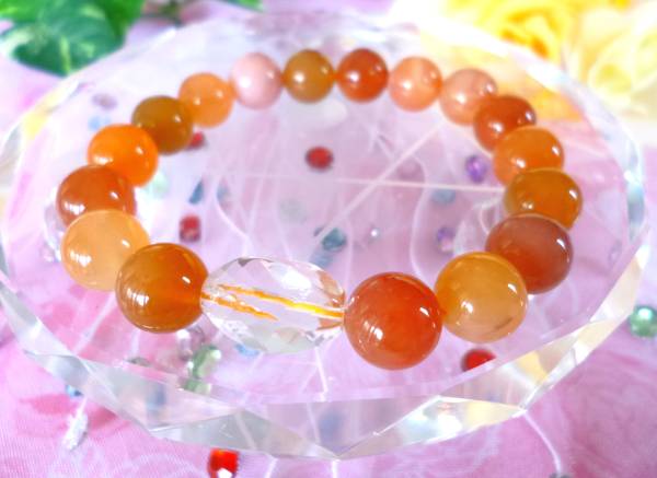 - ★元気パワー★疲労回復★活力アップ☆オレンジボツワナアゲート☆プレミアムきらきらカットクリスタル♪ ☆15.5~16cm☆