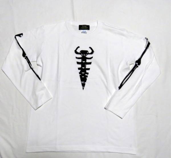 - ボーン骨スカル骸骨TシャツTCMロンT(鎖骨無しV)no2.白L