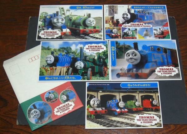 ●機関車トーマス の絵入りはがき50円5枚(未使用)、郵便局売価350円のセットです。入れ物付き。美品
