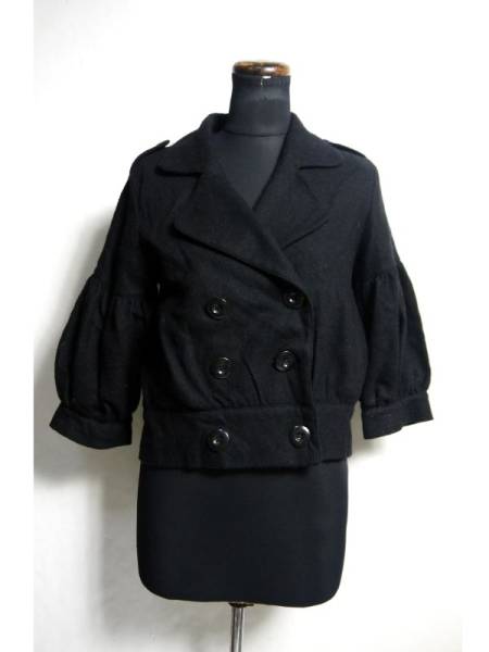 - 美品 ビームスボーイ BEAMSBOY ハーフコート ウール混 黒 C548-80