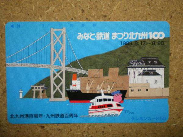 - art・390-2055 北九州港百年 九州鉄道百年 柳原良平 テレカ