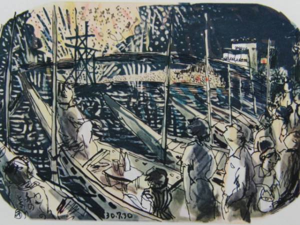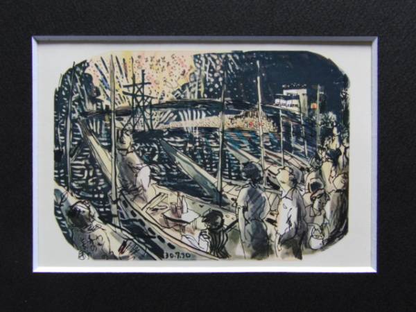 - 木村 荘八、花火、希少な額装用画集より、新品高級額装付、状態良好、送料無料