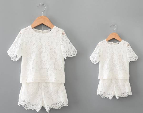 - セットアップ親子ペア服キッズベビー服ホワイトレース/カジュアルパーティドレスバースデー110cm