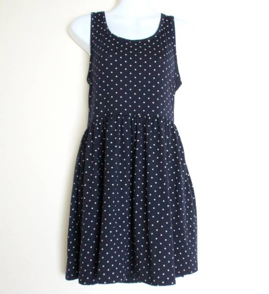 - ネイビー 紺色に白ドット模様のチュニック Mサイズ