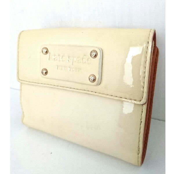 > 正規 Kate spade ケイトスペード エナメル パテント レザー 財布 白 クリーム ホワイト ブラウン ベージュ